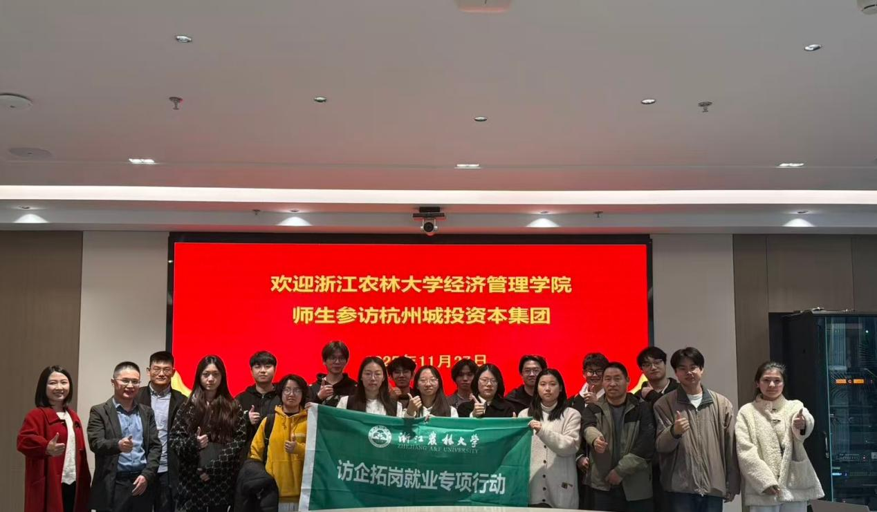 11月27日,经管学院金融工程专业负责人顾光同教授、刘秀芬老师、学生办辅导员王子旋老师、李智老师,金融工程专业本科生以及应用经济学学硕、金融和国际商务专硕研究生,赴杭州城投资本集团有限公司(以下简称杭州城投资本集团)开展行业调研与“访企拓岗“专项活动。