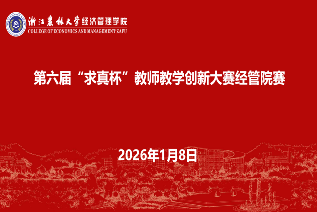 1月8日下午,浙江农林大学教师教学发展中心(经济管理学院分中心)在衣锦教学主楼513教室成功举办第六届“求真杯”教师教学创新大赛院级选拔赛。本次赛事组建由资深教学专家及国家级、省级教学创新大赛获奖教师构成的专业评审团队,学院各专业教师团队积极参与,二十余名教师现场观摩交流。