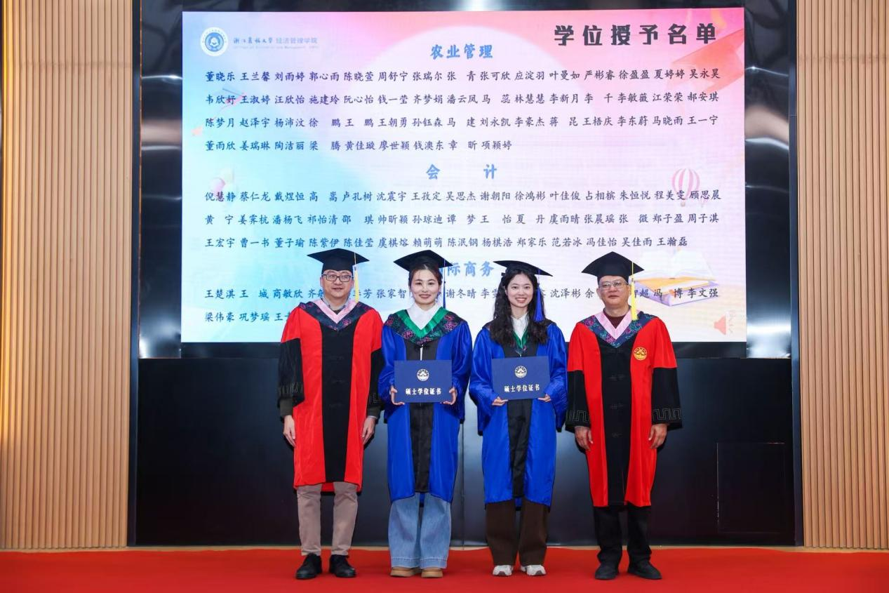 1月13日,经济管理学院2026届冬季研究生毕业典礼暨学位授予仪式在衣锦校区农林大讲堂隆重举行。经管学院院长吴伟光、党委书记陈劲松、副院长蔡细平、副院长朱臻以及研究生学位点负责人、导师代表、毕业班班主任、研究生辅导员、2026届冬季毕业生及家长代表共同参与本次活动。活动由党委副书记曹磊主持。