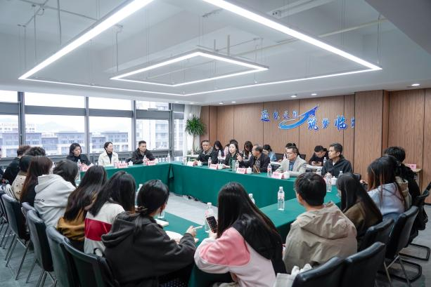 在喜剧湾数字文创园,全体学员与企业创始人进行了创新创业专题座谈交流,围绕创新创业规划、创业经历与经验总结、创业风险防范与应对、创业赛道选择、大学生创业落地路径等核心问题展开讨论。三位创业企业家郑瑜、黄临东、程旭源和园区运营方何兵等结合自身创业历程与企业发展实战经验,为学员们一一答疑解惑,指点方向。