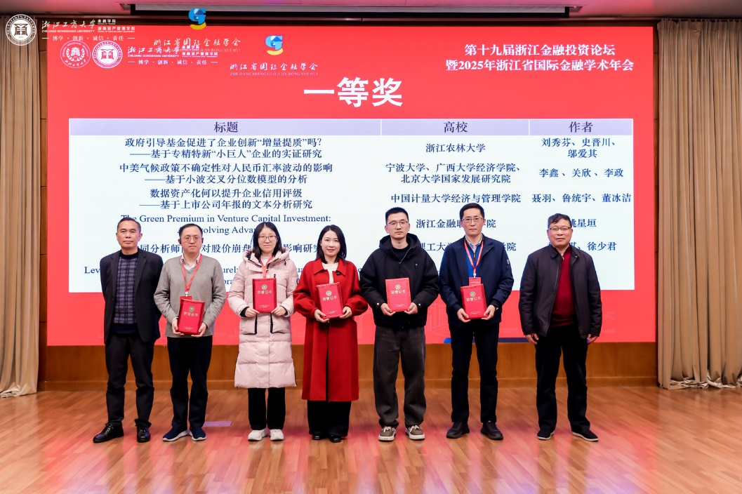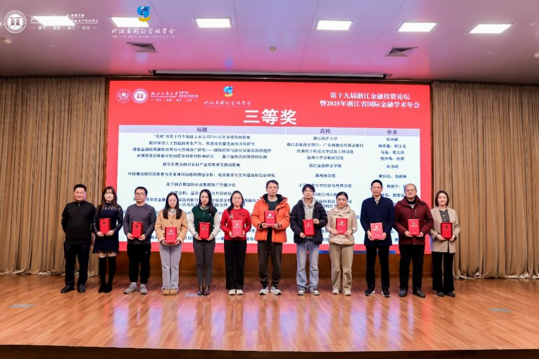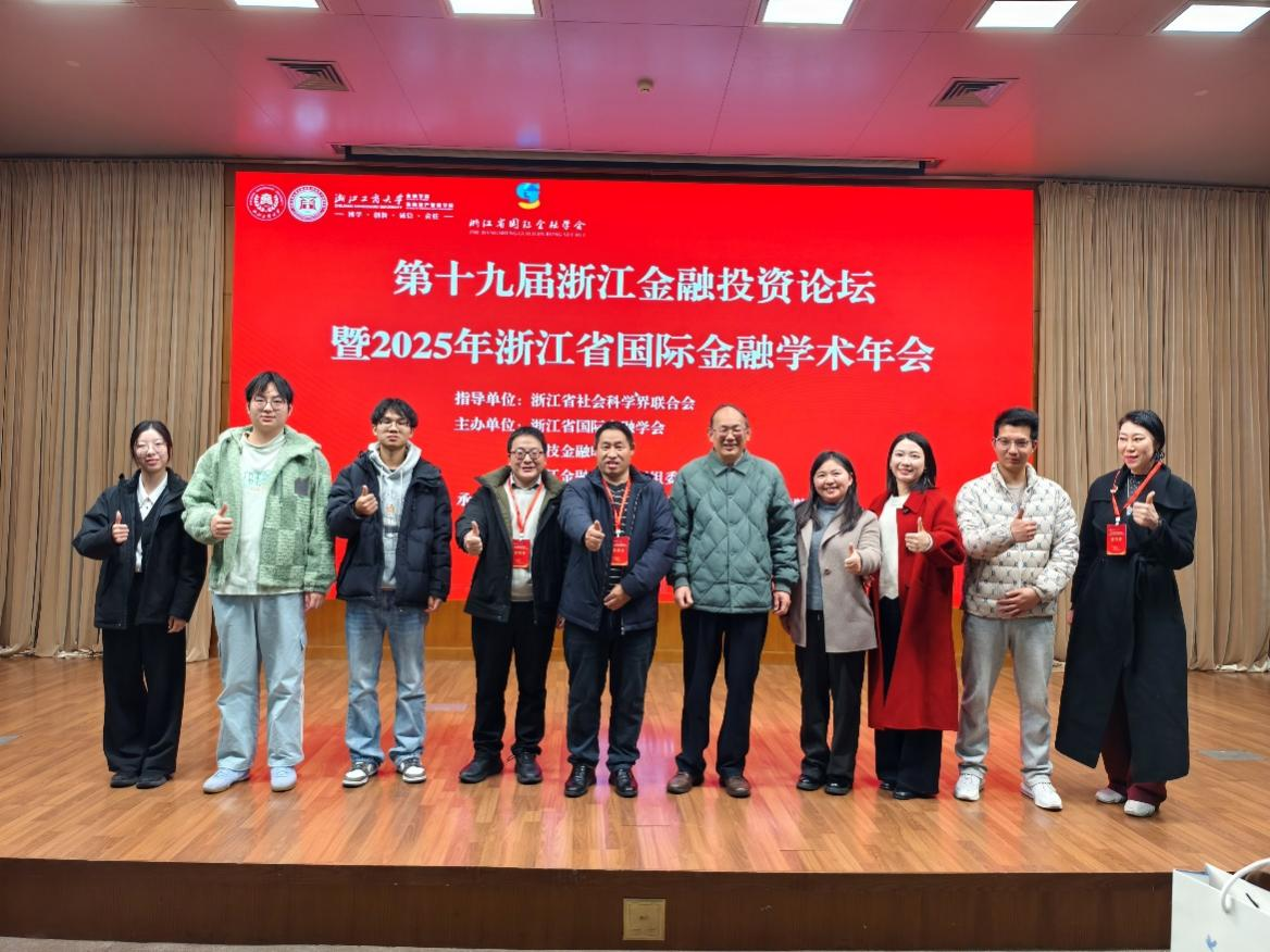 2026年1月17日下午,由浙江省国际金融学会、科技金融时报、浙江工商大学金融学院(浙商资产管理学院)以及浙江金融投资论坛组委会主办的“第十九届浙江金融投资论坛暨2025年浙江省国际金融学术年会”在杭州召开。来自省相关部门领导,金融机构、会员单位、高校院所(学术联盟)的专家学者以及特邀企业家代表、媒体等200余人参加。我院应用经济学学科金融工程专业负责人顾光同教授,专任教师李玉文教授、刘秀芬博士、孙阳阳博士、王跃博士以及研究生代表一同应邀参会交流。