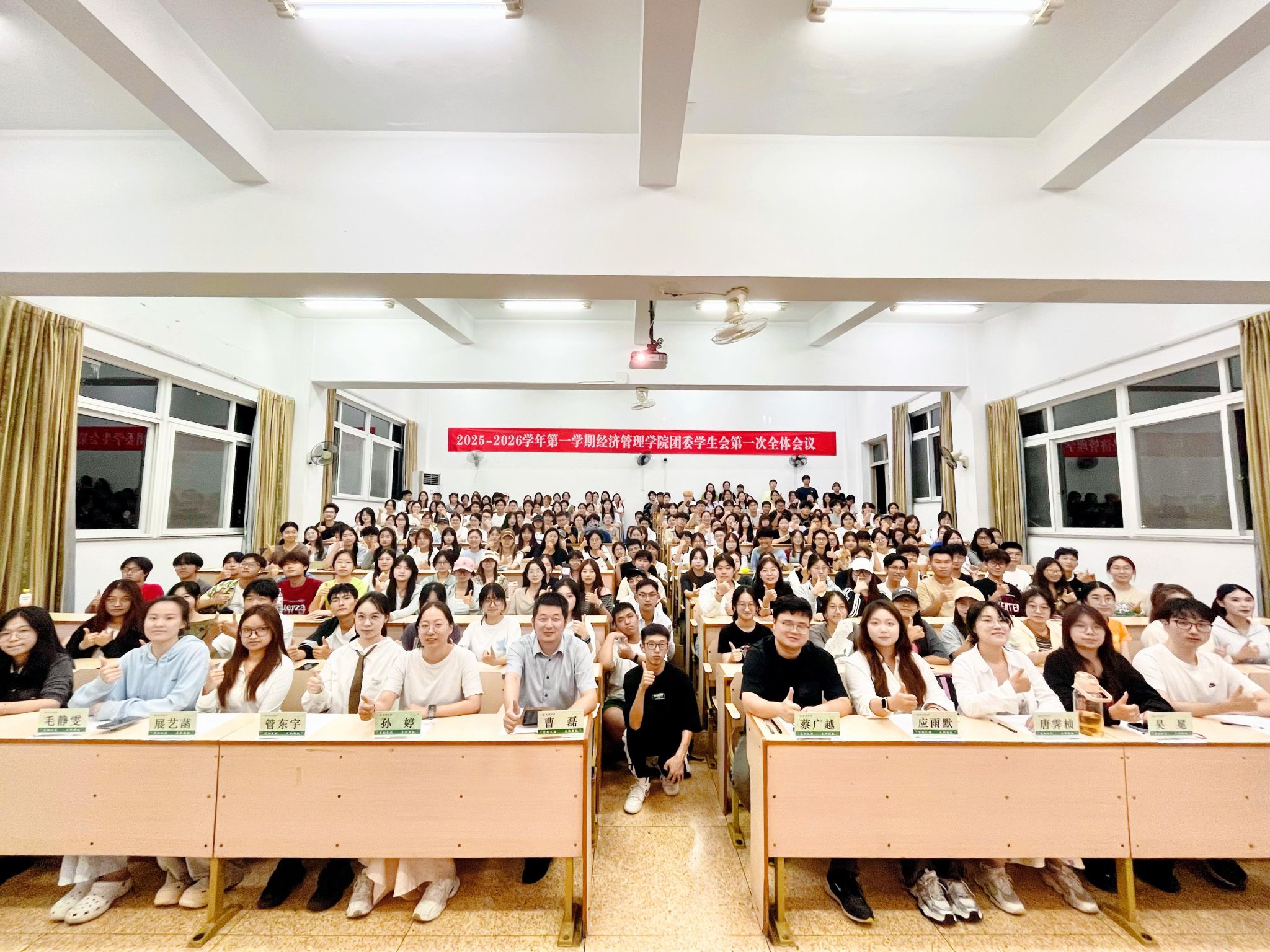 为加强团学凝聚力,开启工作新篇章,10月17日,2025学年经济管理学院第一次团学大会在教学主楼102顺利召开。学院党委副书记曹磊、团委书记蔡广越、学生会秘书长孙婷以及团委学生会全体成员参加会议。