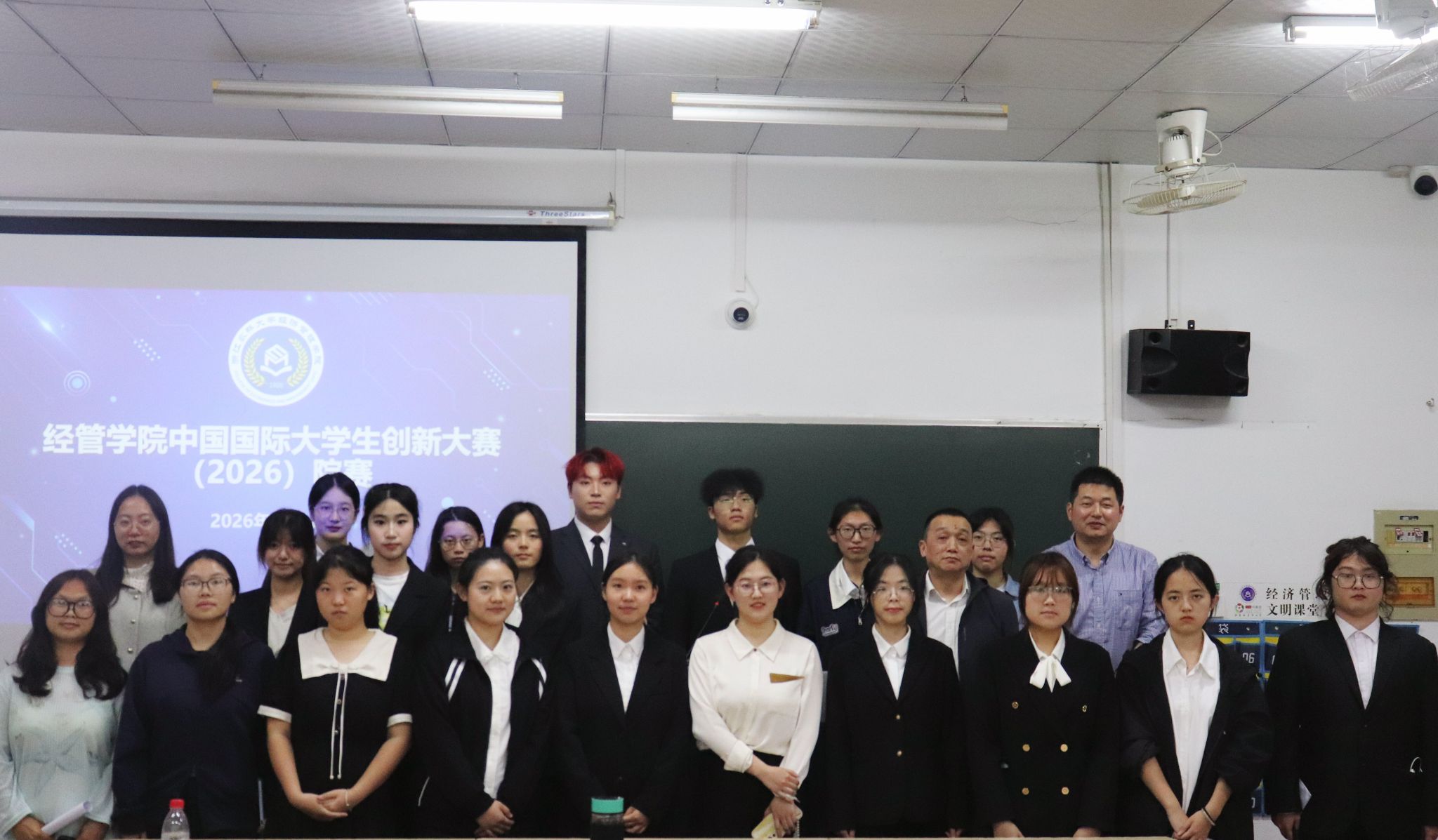 4月10日,经管学院在衣锦校区教学楼主楼104教室举办中国国际大学生创新大赛(2026)院赛。学院副院长蔡细平、院党委副书记曹磊、院团学学生会秘书长孙婷担任评委。